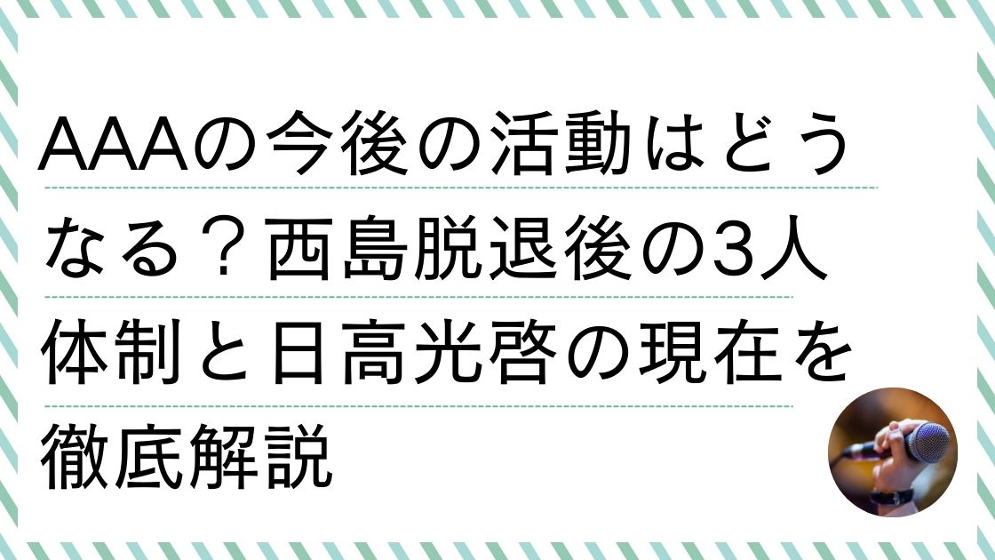 AAA(トリプル・エー)の今後はどうなる?西島隆弘(Nissy)脱退発表の衝撃と現状