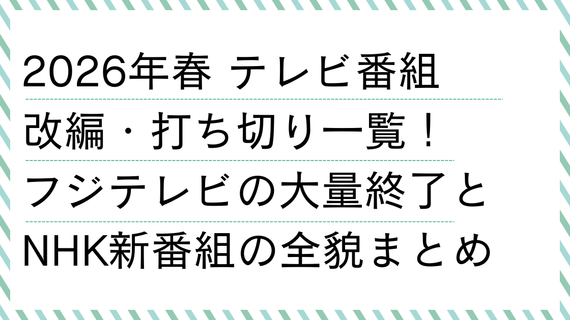 現在2026年2月時点で判明している情報だけでも、長年親しまれたバラエティの終了や、朝の顔ぶれの刷新など、視聴習慣がガラリと変わるニュースが飛び交っています。