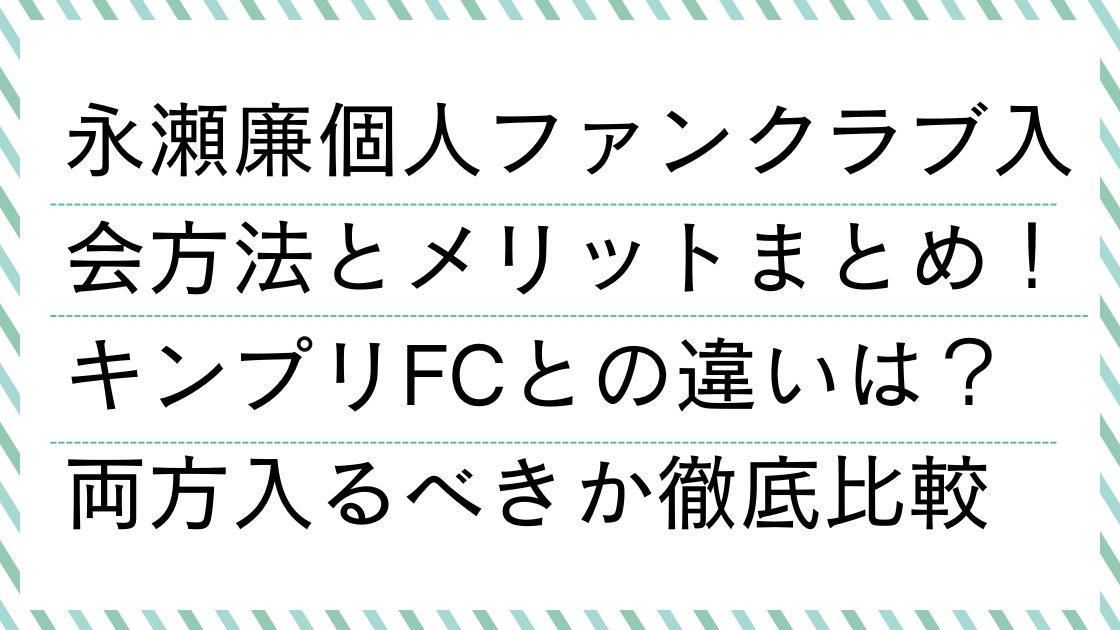キンプリFCが「グループ全体の大きなプロジェクトを応援する場所」なら、個人FCは「永瀬廉という一人の人間の日常や思考を深く共有する場所」というコンセプトの違いがあります。