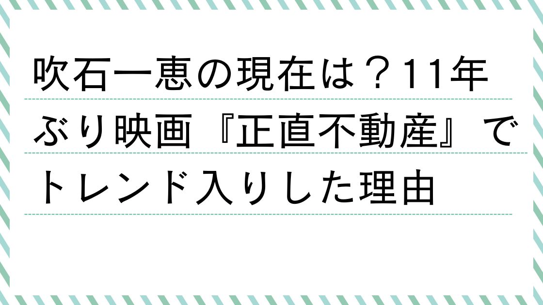 スクリーンで彼女がどのような存在感を放つのか、映画『正直不動産』の公開が今から待ち遠しいですね!当ブログでは、今後も吹石一恵さんの最新情報や映画の続報を追っていきますので、ぜひチェックしてください。
