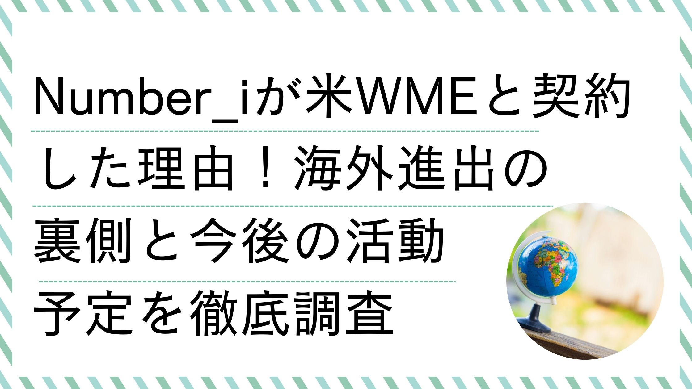 「ついに世界へ!」「Number_iならやってくれると信じていた!」とSNSは大盛り上がり。本記事では、なぜNumber_iがこのタイミングでWMEと契約したのか、その真相となる3つの理由と、気になる海外進出の裏側、そして今後の活動予定について徹底調査しました。